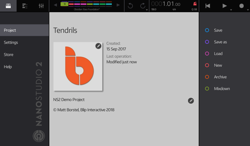 Note: When you open an archived project from the Demos or Archived folder, the archive will first be decompressed to My Projects before loading. If there is a project with the same name already in the My Projects folder, NanoStudio will automatically append a unique number to the end of the project's name so the existing project is not overwritten.